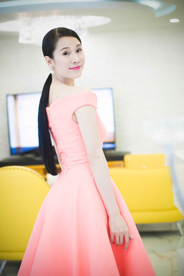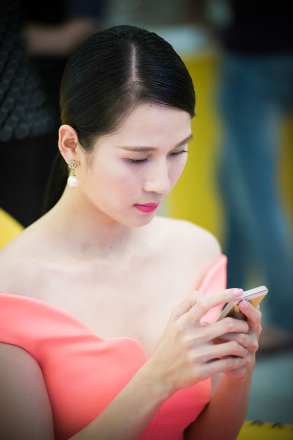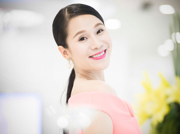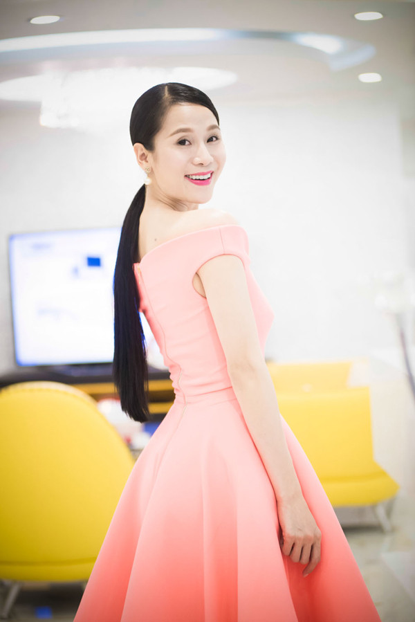 TPO - Nữ người mẫu diện bộ váy màu hồng nhạt vô cùng duyên dáng, trễ nải quai váy để lộ vòng một đầy gợi cảm, thu hút sự chú ý của các quan khách khi cô tham gia sự kiện khai trương một trung tâm thẩm mỹ.