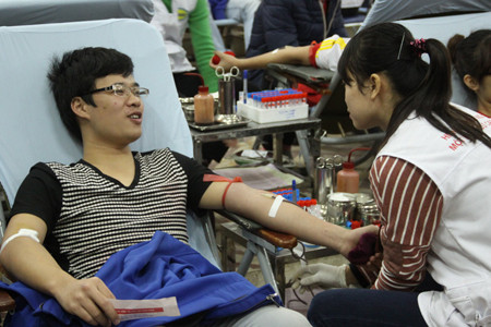 Các bạn sinh viên tham gia hiến máu được các thành viên CLB hướng dẫn và chăm sóc tận tình.