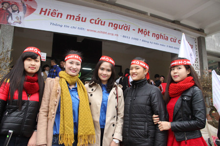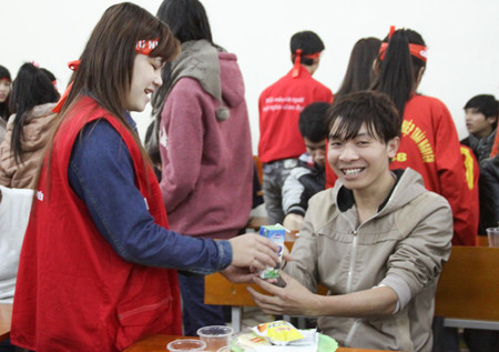 Góp phần vào thành công của Chủ Nhật Đỏ tại Thái Nguyên hôm nay còn có sự góp sức không nhỏ của các bạn thuộc Câu lạc bộ vận động tình nguyện hiến máu Đại học Thái Nguyên.