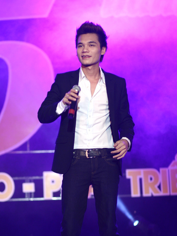 | Nam ca sĩ giải nhất Sao Mai 2007 Lê Anh Dũng đem đến một nét khác lạ cho đêm văn nghệ. |