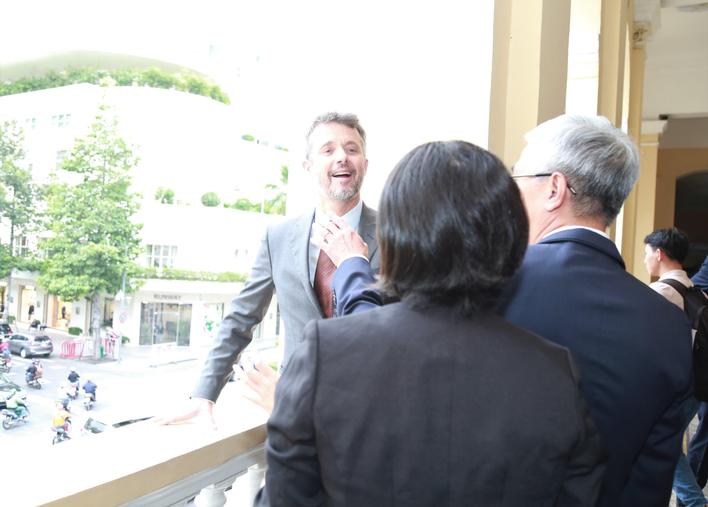 | Tại buổi gặp gỡ lãnh đạo TPHCM, Thái tử kế vị Đan Mạch Frederik có dịp theo dõi, ngắm nhìn cảnh quan khu vực trung tâm thành phố từ ban công tòa nhà Ủy ban nhân dân TPHCM. |