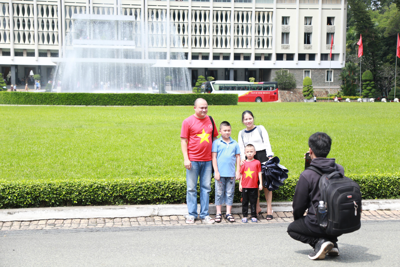| Gia đình trẻ ghi hình lưu niệm tại di tích lịch sử dịp Quốc khánh 2/9. |