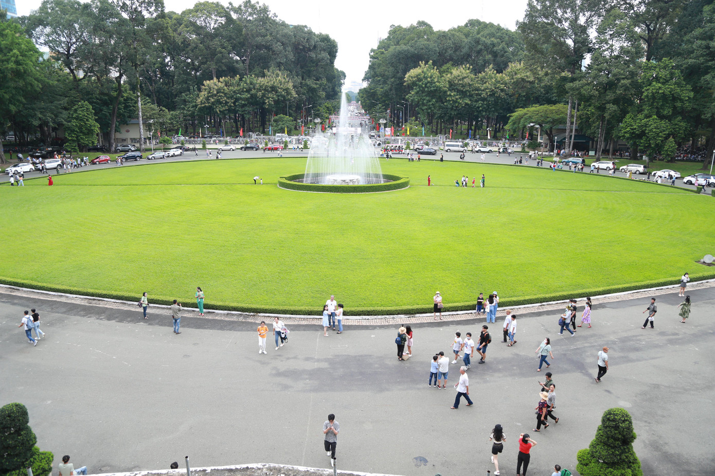 | Nhiều bạn trẻ "check-in" tại các không gian đặc biệt trong Dinh Độc Lập. |
