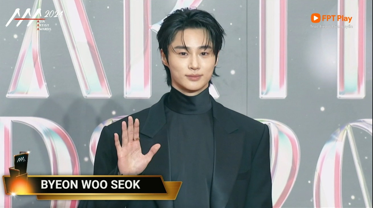 Là một trong những bộ đôi được khán giả "đẩy thuyền" mạnh mẽ trong năm 2024 sau thành công của Lovely Runner, Byeon Woo Seok và Kim Hye Yoon cùng tới AAA 2024 khiến fan couple náo loạn. Cả hai không đi thảm đỏ chung. Woo Seok ra trước, lịch lãm như hoàng tử. Hye Yoon "dịu keo" như công chúa với đầm đen khoe vai.
