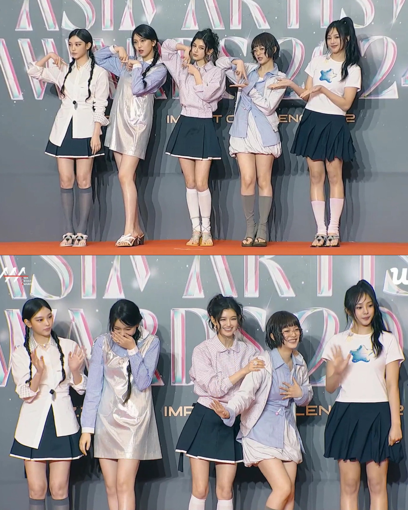 NewJeans tươi tắn, rạng rỡ trên "thảm cam". Các fan đoán era How Sweet sẽ được mang lên sân khấu vì Hanni đội tóc giả ngắn. Năm cô gái vẫn xinh yêu nhưng trang phục lại gây xôn xao. Fan khen outfit hợp với định hướng của nhóm, gần gũi, đáng yêu, ngọt ngào. Không ít cư dân mạng lại cho rằng trang phục của NewJeans quá đơn điệu để đi dự sự kiện, nhất là đồ của Minji, sự kết hợp của babytee và chân váy giống như đồ thường ngày hay đi sân bay hơn.