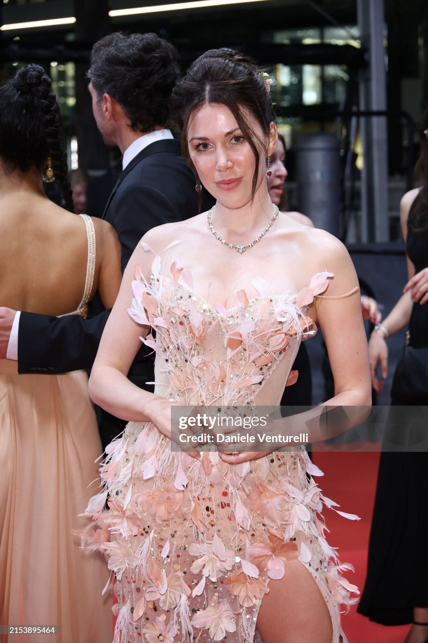 Thiết kế thương hiệu Việt xuất hiện trên thảm đỏ LHP Cannes ngày thứ 7. Doanh nhân Aza Misakyan khoe thân hình đầy đặn trong mẫu váy đính lông vũ của NTK Trà Linh.