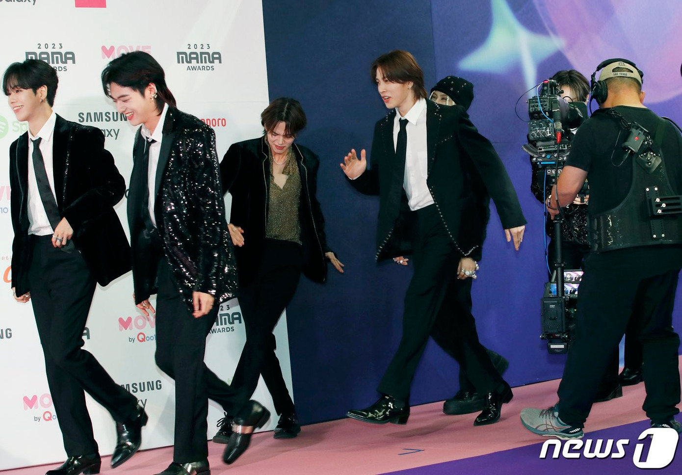 HHTO - Từ dàn thần tượng biểu diễn tới khách mời trao giải đều xuất hiện trên thảm đỏ của "MAMA 2023" với dresscode đen trắng. TREASURE nhảy slick back bước ra. Nàng host Jeon Somi xinh đẹp, sang trọng tựa thiên nga đen.