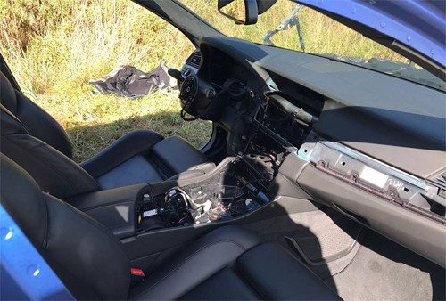 Mẫu xe tính năng cao của serie 5 bị kẻ trộm bỏ lại phần "xác" tại một nơi vắng vẻ. Tuy nhiên, dường như không đủ thời gian để đạt mục đích trọn vẹn, bởi những thứ quan trọng nhất như động cơ và bộ phanh vẫn nằm lại, theo những bức ảnh đăng trên fanpage của Autogespot.