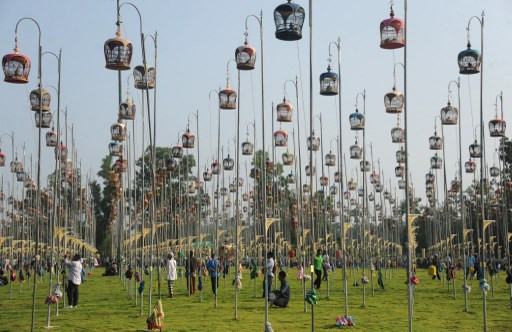 Những chiếc lồng chim được treo cao trong cuộc thi chim hót ở tỉnh Narathiwat, miền nam Thái Lan hôm 20/9. Hơn 1.000 con chim từ Thái Lan, Malaysia và Singapore tham gia lễ hội này.