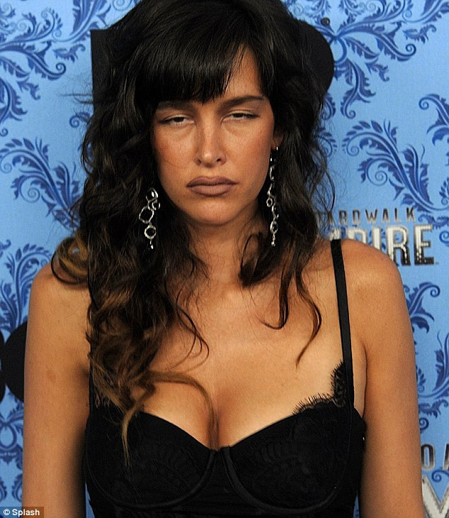 Tuần trước, khi cùng với đoàn làm phim Boardwalk Empire ra mắt phần 2 tại New York, Paz de la Huerta cũng khiến quan khách choáng váng với cách làm đẹp khác người. Với đôi mắt lim dim và bờ môi thâm xì, trông cô không khác gì một kẻ nghiện rượu đang say xỉn.
