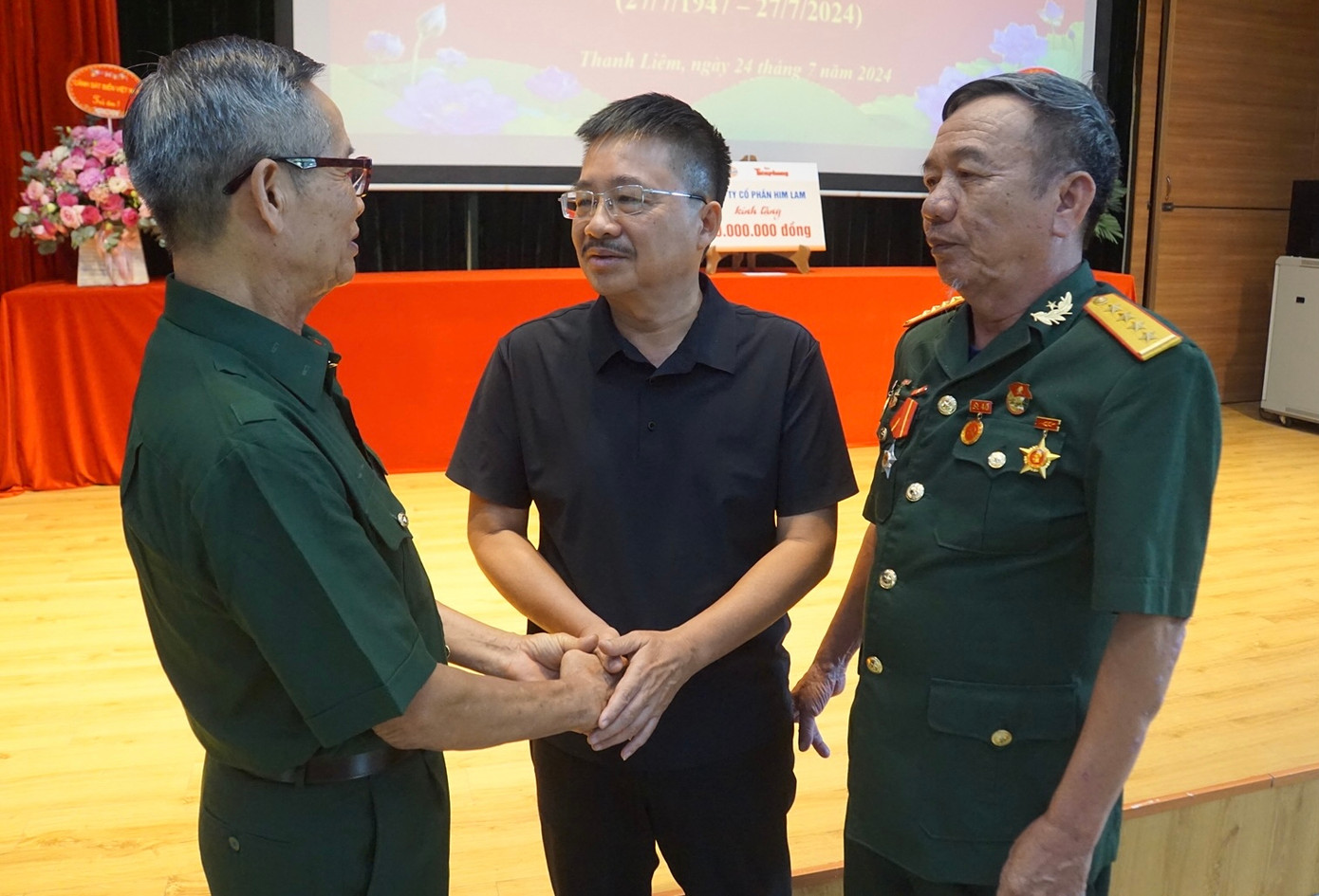 Đại diện của các trung tâm điều dưỡng thương binh, người có công tại tỉnh Hà Nam cũng gửi đến báo Tiền Phong và Công ty cổ phần Him Lam những tình cảm thân thiết. Bà Mã Thị Bích Nhạn, Giám đốc Trung tâm Điều dưỡng thương binh Duy Tiên cho hay, sự quan tâm của báo Tiền Phong và Công ty cổ phần Him Lam tới các thương binh tại trung tâm là món quà vô giá, thể hiện nét đẹp truyền thống “uống nước nhớ nguồn”, “đền ơn đáp nghĩa” của dân tộc Việt Nam. “Những món quà của quý vị đã tiếp thêm nguồn sức mạnh giúp các đồng chí thương binh có thêm nghị lực để chiến đấu với thương tật mà họ đang mang trong mình”, bà Nhạn chia sẻ.