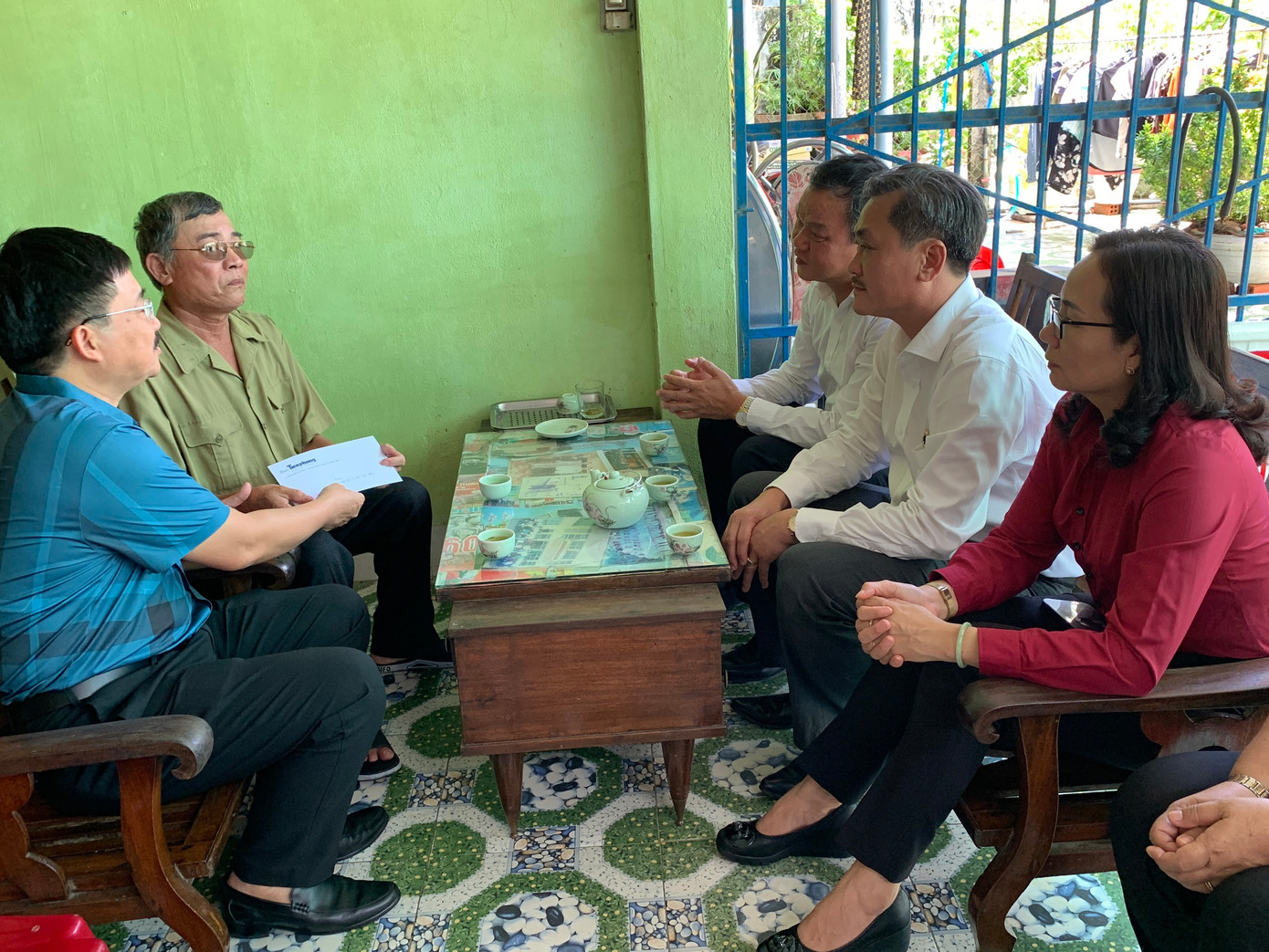 Sau đó, đoàn công tác báo Tiền Phong đã tới thăm, trao quà cho gia đình mẹ Việt Nam anh hùng Đinh Thị Nhẫn, Nguyễn Thị Bẹp và thương binh loại 1 Trần Văn Chấn.