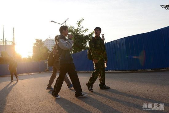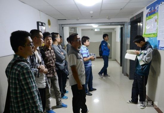 | Cha mẹ Chen ngồi bên ngoài trường chờ con. |