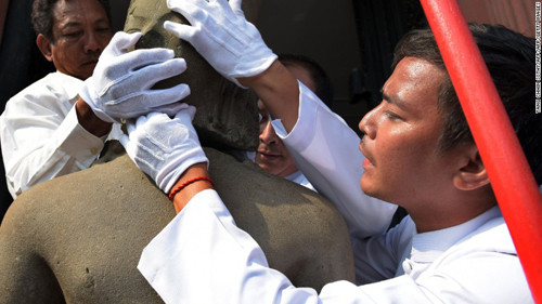 Bảo tàng quốc gia Campuchia đã tham gia vào việc nối liền đầu và thân pho tượng. Phó giám đốc Chea Socheat cho biết chúng hoàn toàn vừa khít với nhau.