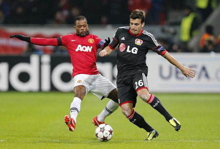 Phút 12, từ bên cán trái, Rolfes (6-Leverkusen) có pha căng ngang vào trong vòng cấm khiến Ferdinand (5-M.U) phải đánh đầu phá bóng giải nguy.