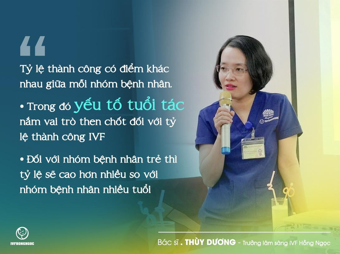 Trong đó, với những nhóm bệnh nhân từ 42 tuổi trở lên thì xác suất thành công của một chu kỳ thụ tinh ống nghiệm chỉ rơi vào khoảng 10% cho một chu kỳ. Còn đối với nhóm bệnh nhân trẻ từ 30 tuổi trở xuống thì con số có thể lên tới 60-70%”.