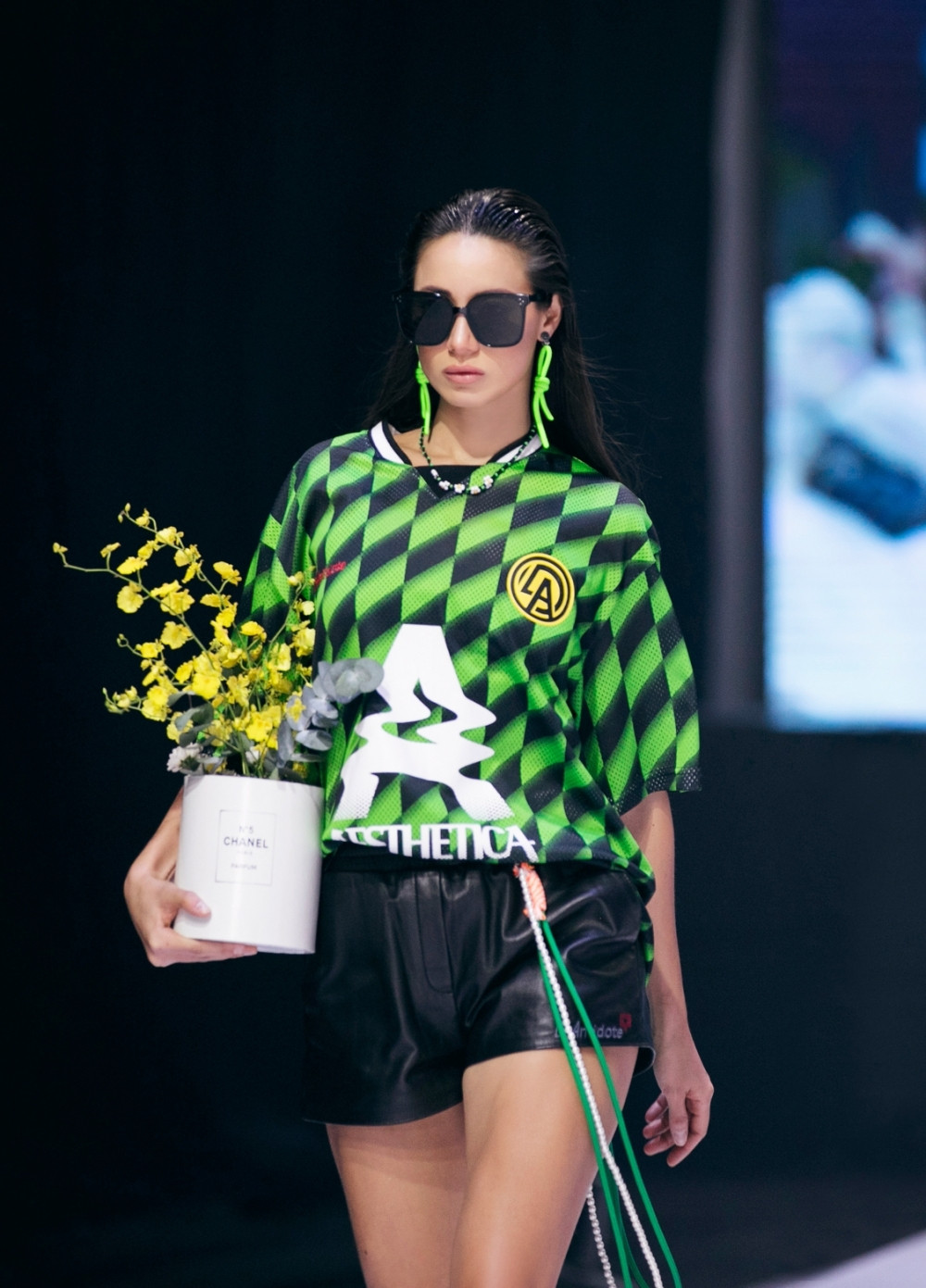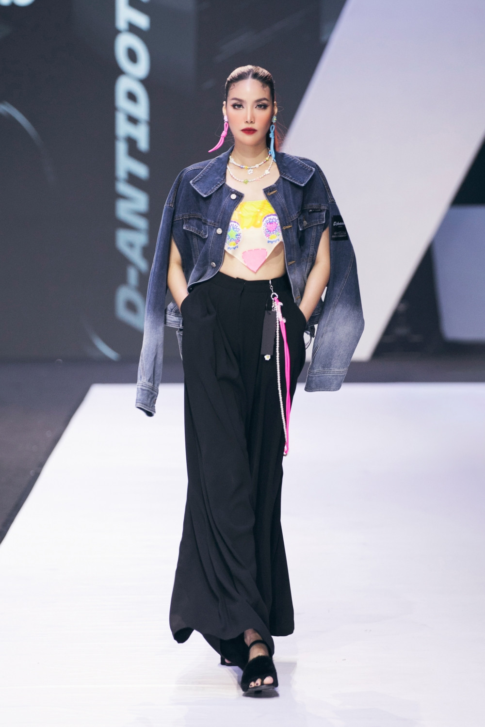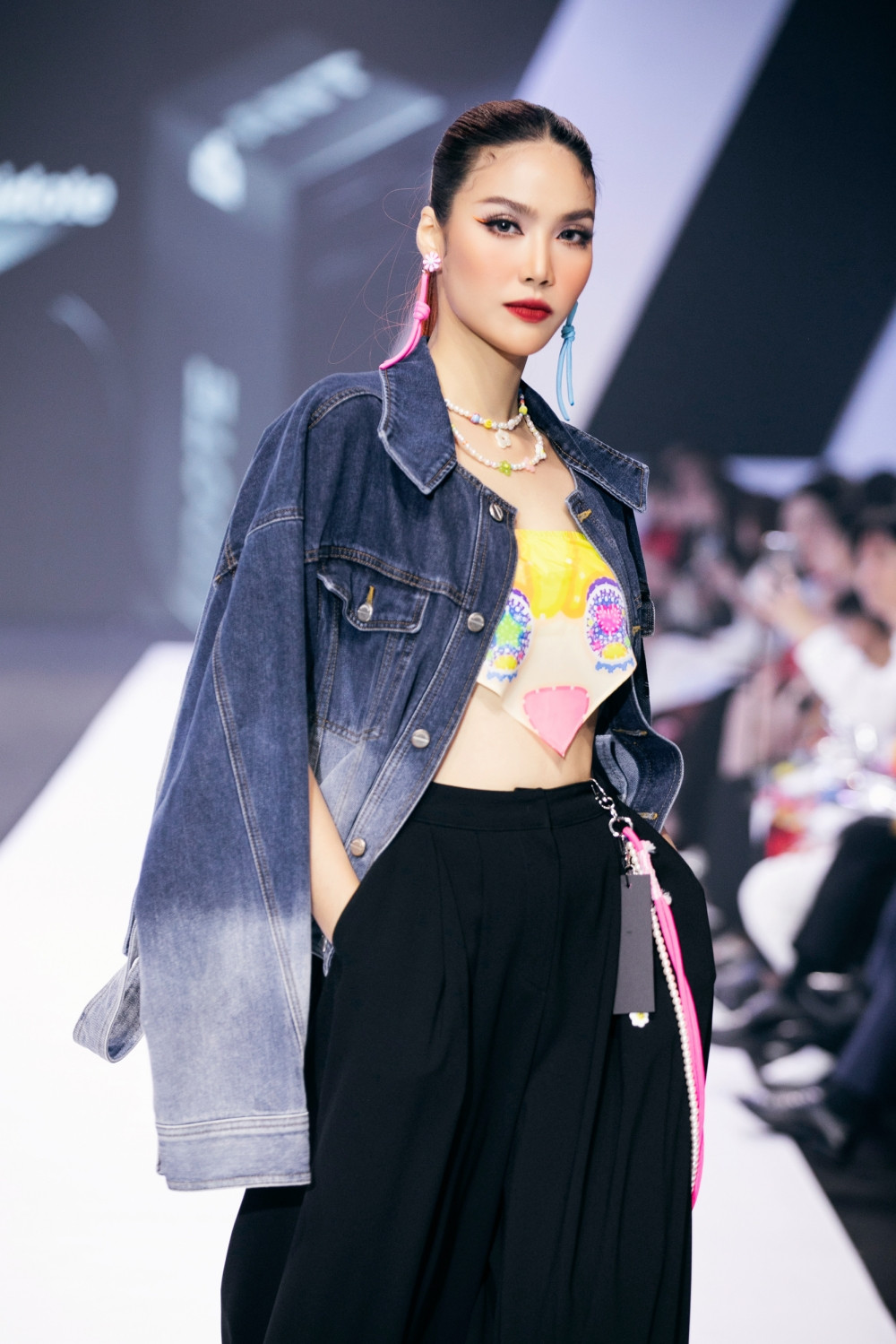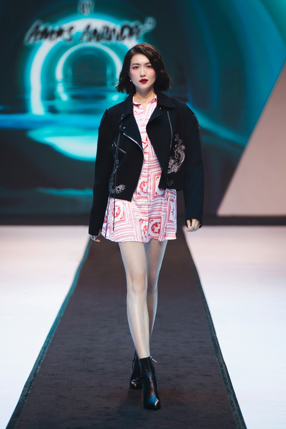Giữ vị trí vedette của bộ sưu tập AMOS AND FRIENDS đến từ NTK người Singapore, Á hậu Lệ Hằng xuất hiện với thần thái tươi trẻ.