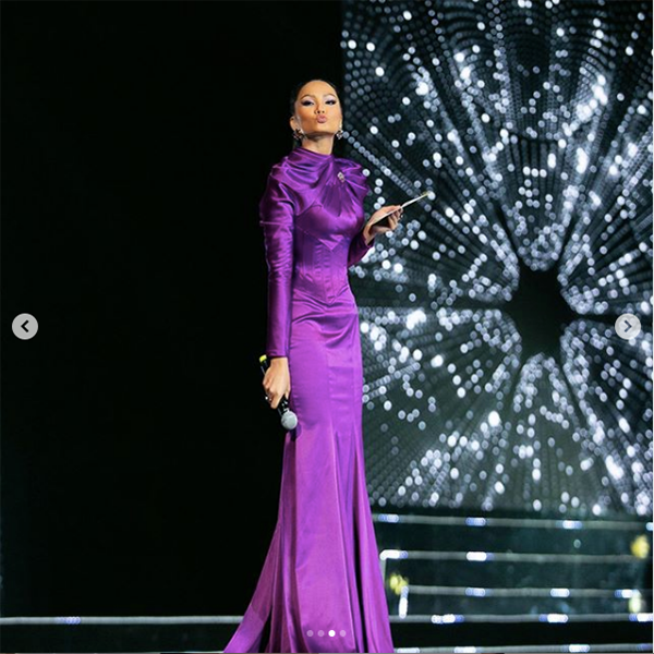 H'Hen Niê diện bộ váy tím kín mít khi đảm nhận vai trò MC.