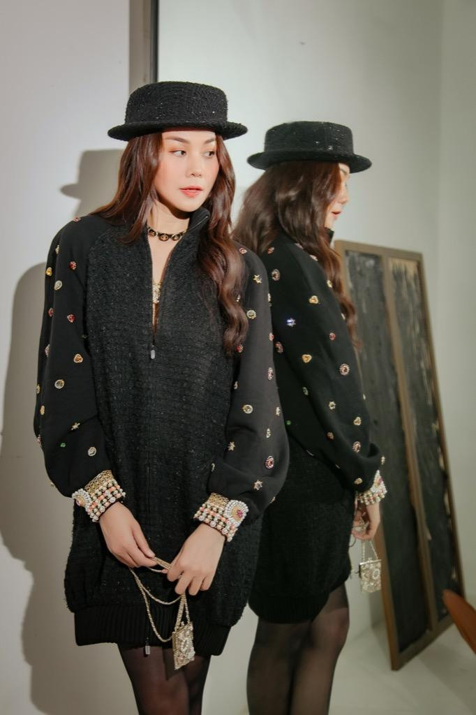 Trong loạt ảnh lần này, Thanh Hằng hóa quý cô mùa Thu với những set đồ từ thanh lịch đến nữ tính. Với chiếc đầm cài khuy đính đá, Thanh Hằng khéo léo kết hợp phụ kiện vòng cổ, vòng tay, mũ vành chuẩn trend để ''nâng tầm'' diện mạo. Mỹ nhân họ Phạm chọn lối trang điểm tông hồng nhẹ nhàng, ngọt ngào tôn lên vẻ trẻ trung.