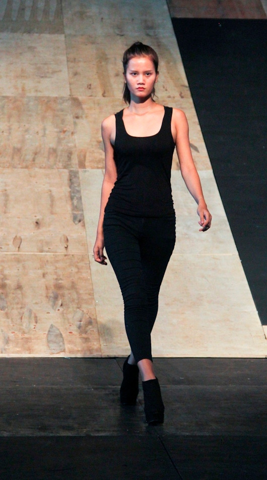 Top 4 VN's Next Top Model 2015 mặc đồng phục màu đen cá tính khi tham gia luyện tập.