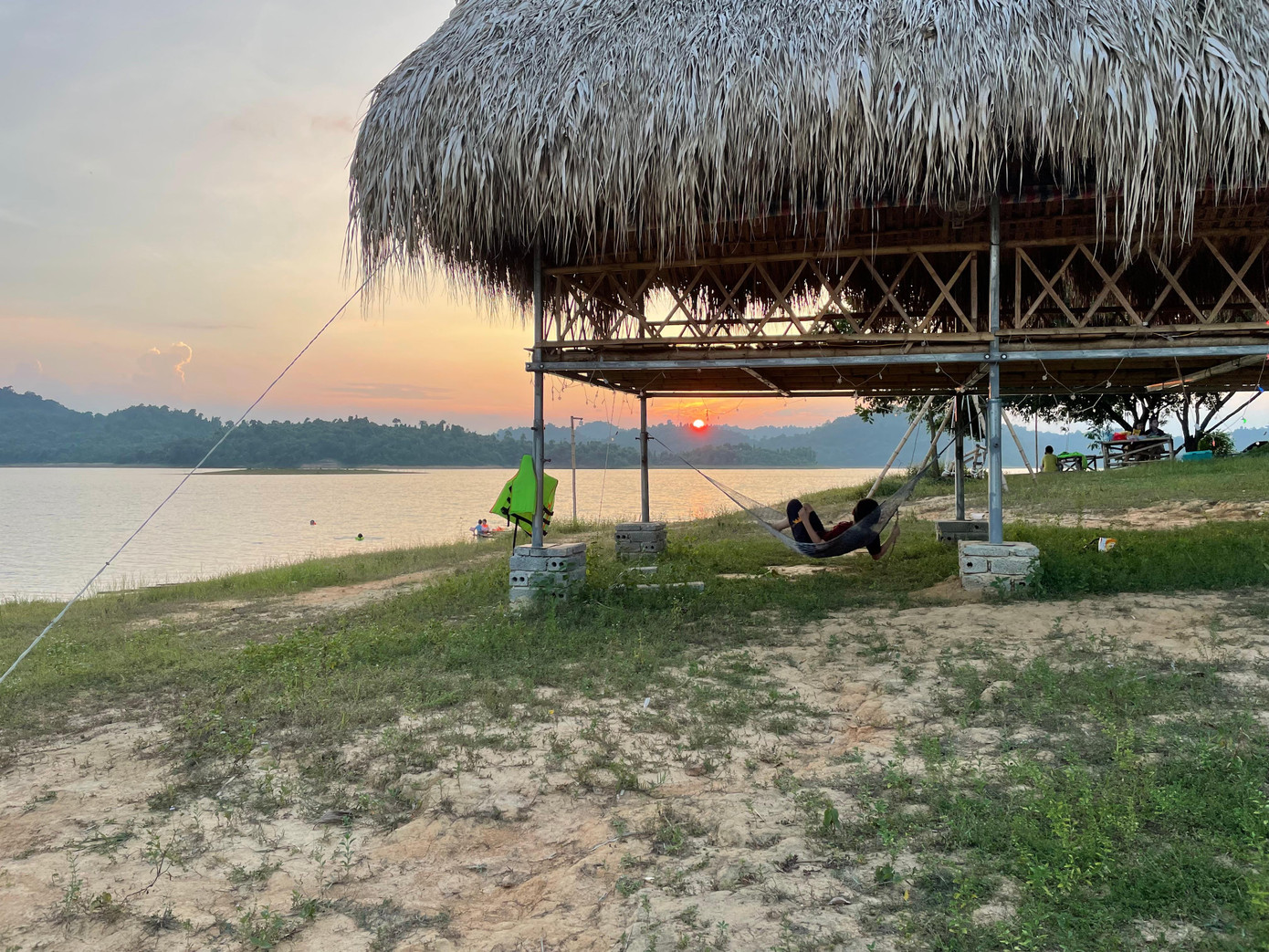 | Hoàng hôn bên hồ tại điểm du lịch cộng đồng Hoa Mua |
