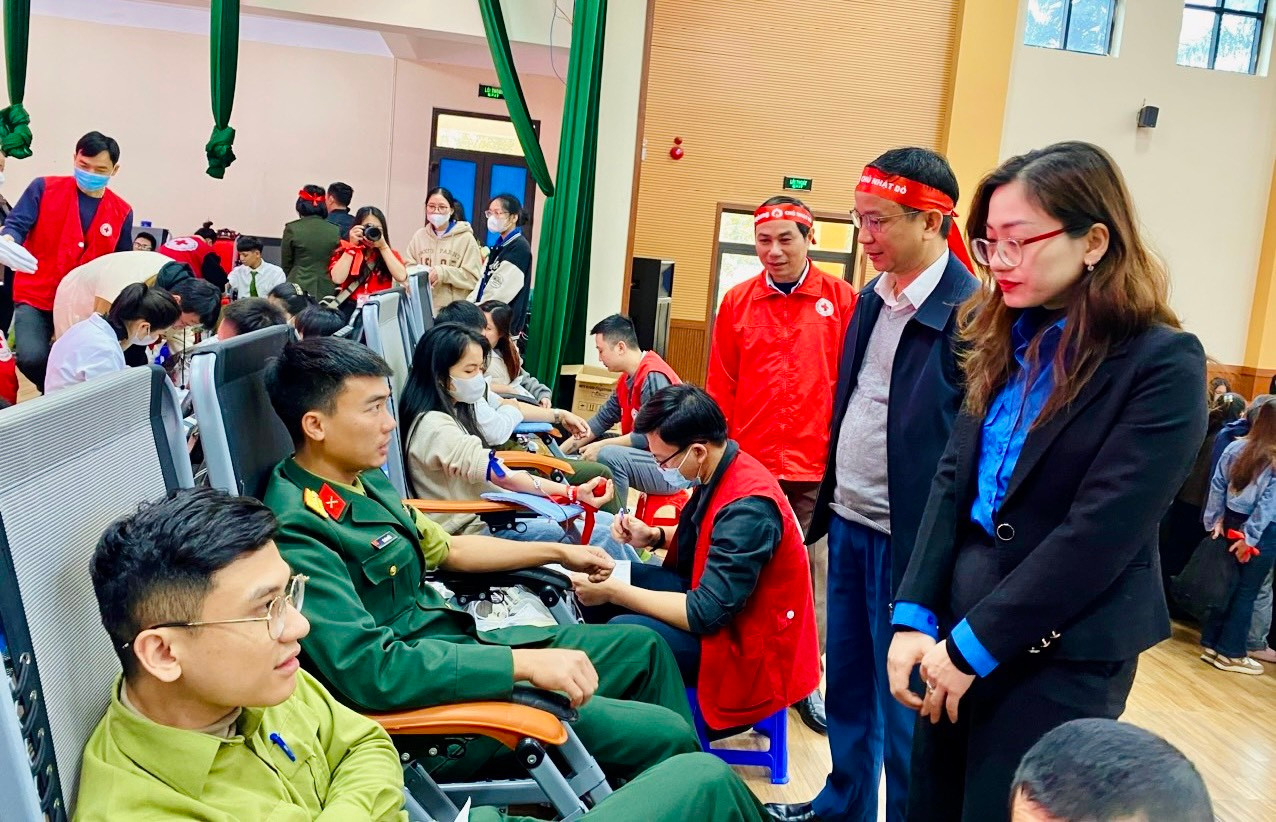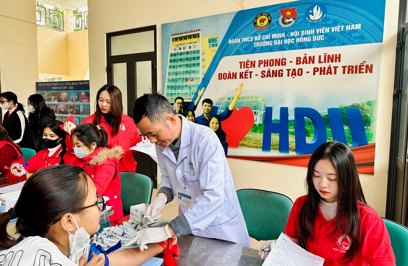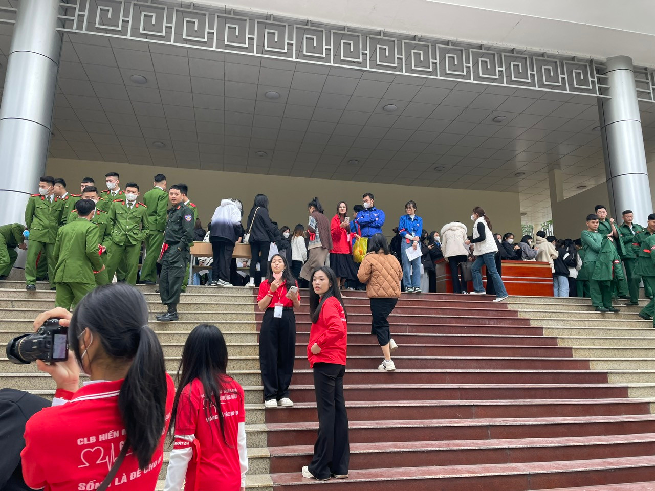 Ngay từ sáng sớm, hơn 1.000 tình nguyện viên đã có mặt tại hội trường lớn của Trường Đại học Hồng Đức thực hiện các bước ghi thông tin, kiểm tra sức khoẻ, thực hiện các bước để hiến máu.