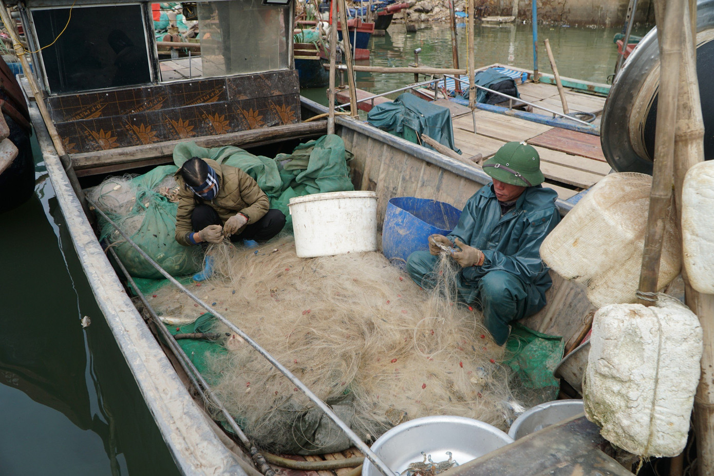| Ngư dân tháo gỡ hải sản trong lưới, chuẩn bị cho những chuyến ra khơi tiếp theo. |