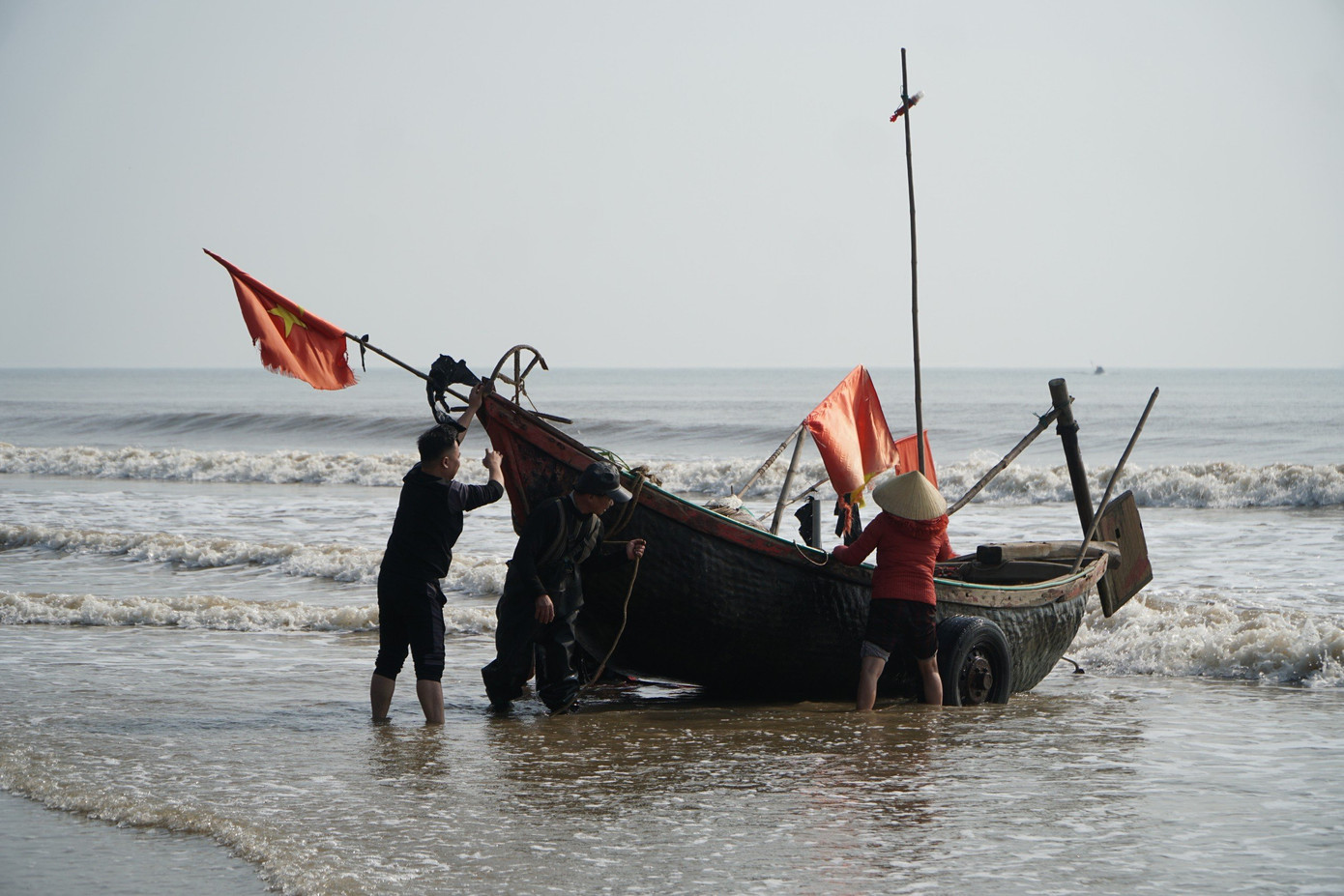 | Thuyền khai thác vùng gần bờ, đưa hải sản về trong ngày để bán. Ảnh chụp ngày mùng 3 Tết. |