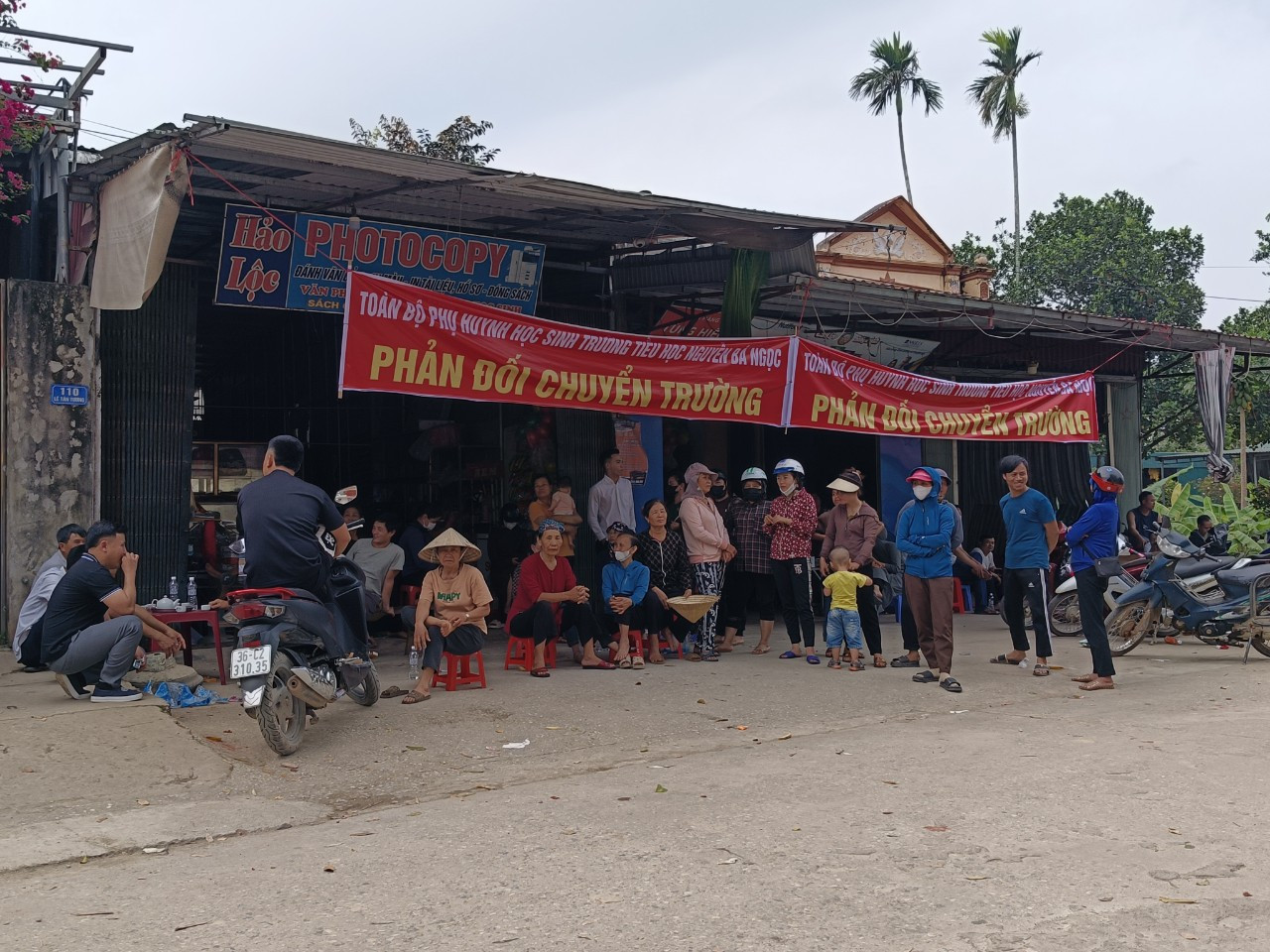 Do không đồng ý với kế hoạch sáp nhập trên, ngày 27/3, các phụ huynh đã đồng loạt cho con cháu nghỉ học và tập trung trước cổng trường căng băng rôn, phản đối.