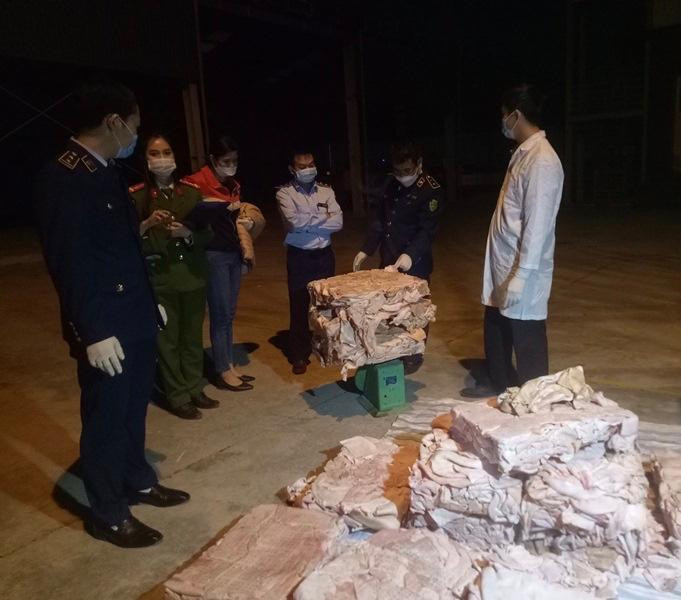 Tại thời điểm kiểm tra (tối 18/12) lực lượng chức năng phát hiện gần 1 tấn bì lợn không có hóa đơn, chứng từ chứng minh nguồn gốc, đang bốc mùi hôi thối.