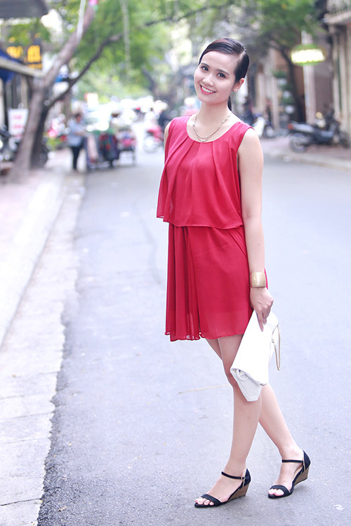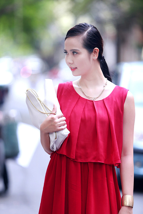 Cô luôn chọn những bộ cánh nhẹ nhàng để tôn lên nét đẹp thanh tú trong mỗi lần xuất hiện.
