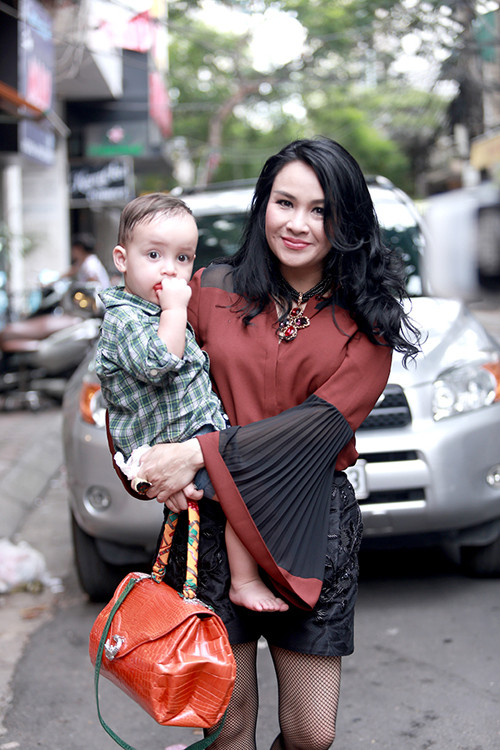 Chiều qua (26/6), Thanh Lam ăn mặc sành điệu và bế cháu trai đến tham dự một buổi khai trương thời trang tại Hà Nội.