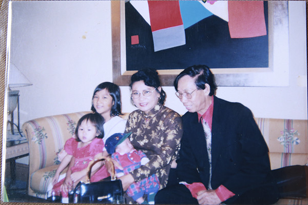 Vợ chồng nhạc sĩ Thuận Yến - Thanh Hương bên ba cháu ngoại, con của Thanh Lam.