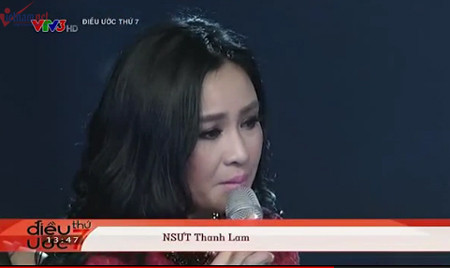 Hình ảnh ca sĩ Thanh Lam bày tỏ sự xúc động về cặp đôi Nhật Thanh và Như Đào của chương trình "Điều ước thứ 7".