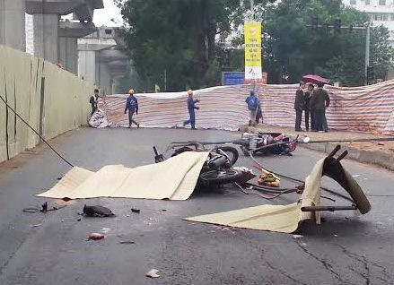Hiện trường vụ tai nạn làm 1 người chết, 2 người bị thương tại dự án đường sắt đô thị Hà Nội, tuyến Cát Linh - Hà Đông. Ảnh: Zing