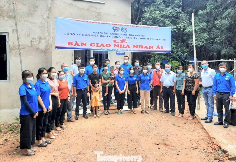 Theo đó, nhằm giúp thanh niên công nhân giảm bớt khó khăn do ảnh hưởng bởi dịch bệnh COVID-19, Ban Thường vụ Đoàn khối - Ủy ban Hội LHTN Khối Doanh nghiệp tỉnh Bình Dương đã phối hợp, vận động Chi đoàn cơ sở Công ty Bảo Việt Bình Dương, Công ty TNHH Ô tô Hiệp Lợi trao tặng nhà nhân ái cho chị Nguyễn Thị Mộng Trinh (ấp Phú Bằng, xã An Linh, huyện Phú Giáo).