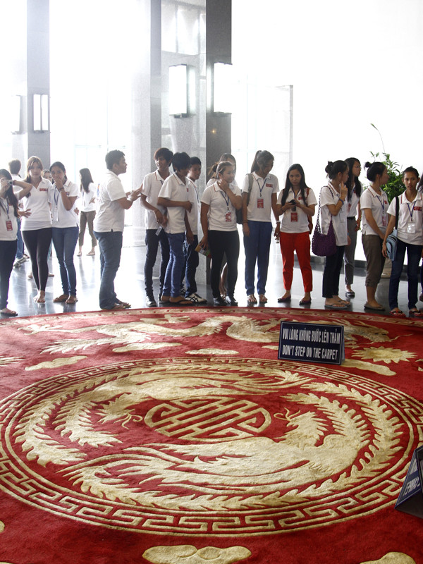 Theo lối hành lang rộng dài, đoàn thanh niên kiều bào lần lượt đến thăm quan từng căn phòng được bài trí sang trọng, theo từng phong cách như: phòng khánh tiết, phòng họp hội đồng nội các, phòng làm việc… trong Dinh.