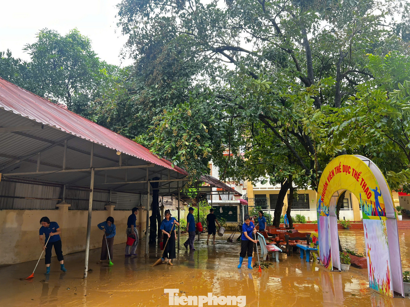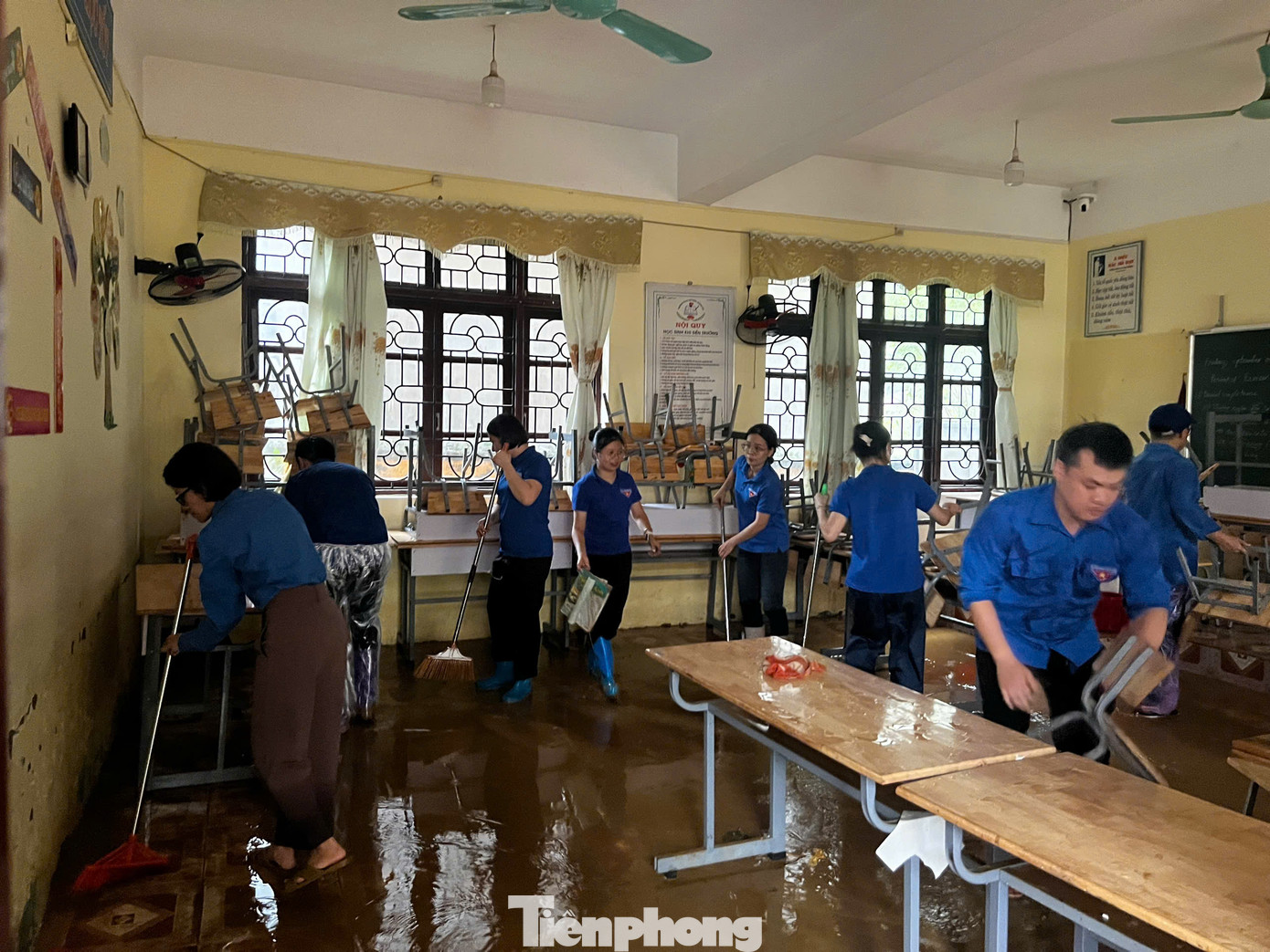| Sau cơn bão, các tổ đội thanh niên xung kích dọn dẹp nhà cửa, trường học. |
