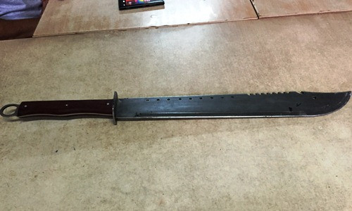 Phát hiện cảnh sát đến, Phong lao vào nhà chốt cửa cố thủ. Lực lượng chức năng vừa phá cửa thì hắn chạy ra ngoài, "múa" mã tấu hăm doạ. Sau hơn nửa tiếng thuyết phục bất thành, cảnh sát đồng loạt ập vào khống chế Phong.