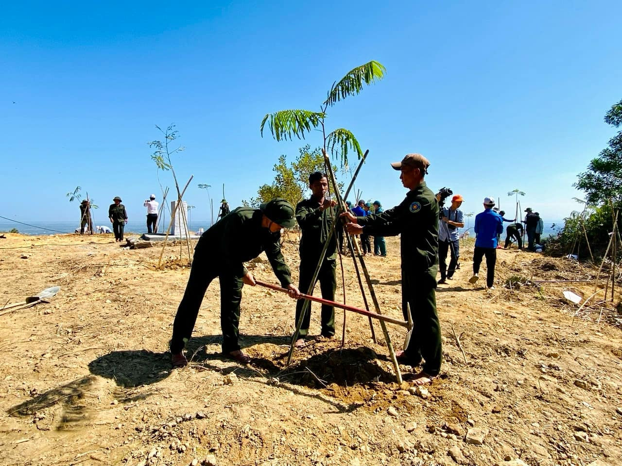 | Những người trẻ chung tay tạo thêm môi trường xanh cho hòn Vượn. |