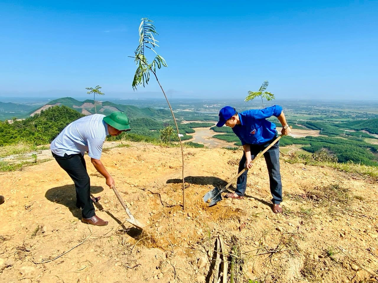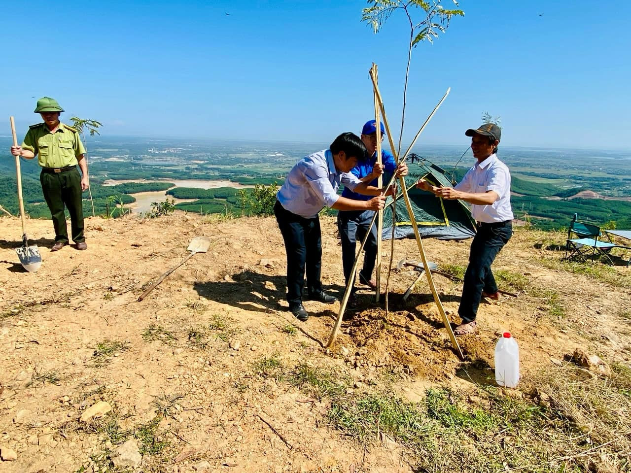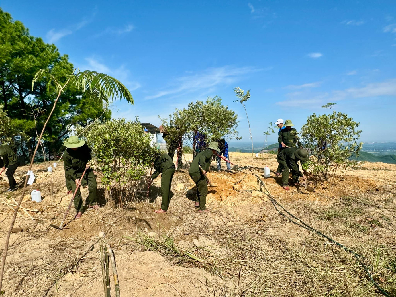 Hình ảnh đoàn viên, thanh niên cùng cơ quan chức năng tạo đường hoa, vườn hoa tại núi hòn Vượn: