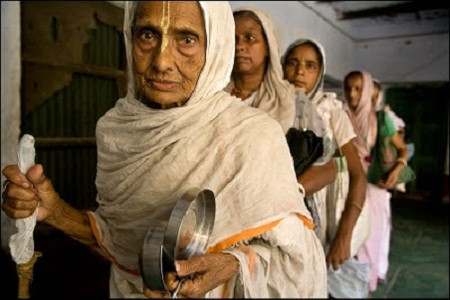 Bà Lalita Goswami đã sống cả đời ở thành phố này nhờ vào những bữa cơm từ thiện được cung cấp một lần một ngày và được hỗ trợ 6 đô la tiền tiêu vặt hàng tháng. Giờ đây bà đã ngoài 70 tuổi, sống trong một căn phòng tập thể với 29 phụ nữ khác cùng cảnh ngộ. Tất cả họ đều nghèo khó. Gần đây, Goswami thấy sức khỏe mình ngày càng xấu. “Tôi bao nhiêu tuổi cũng chẳng còn nhớ rõ nữa, 70 hay 80 gì đó, tất cả những gì tôi nhớ được rõ ràng là các con tôi cũng đã lập gia đình và có con cái của chúng rồi.”