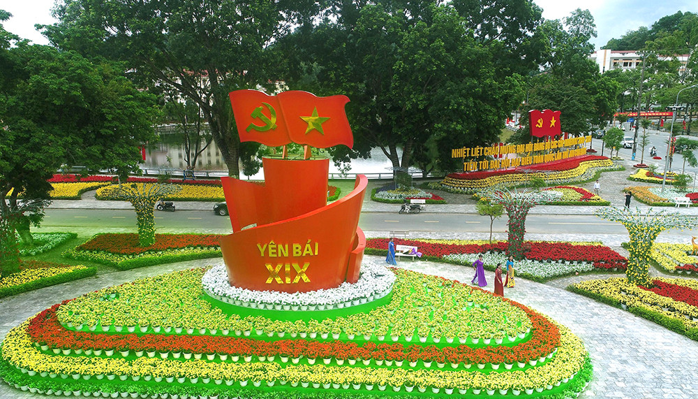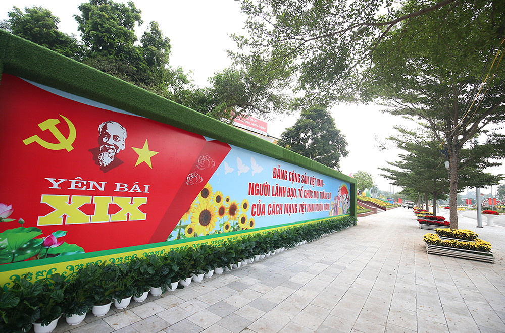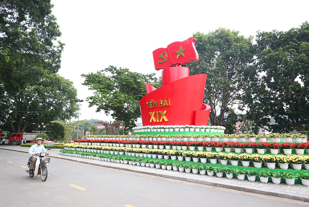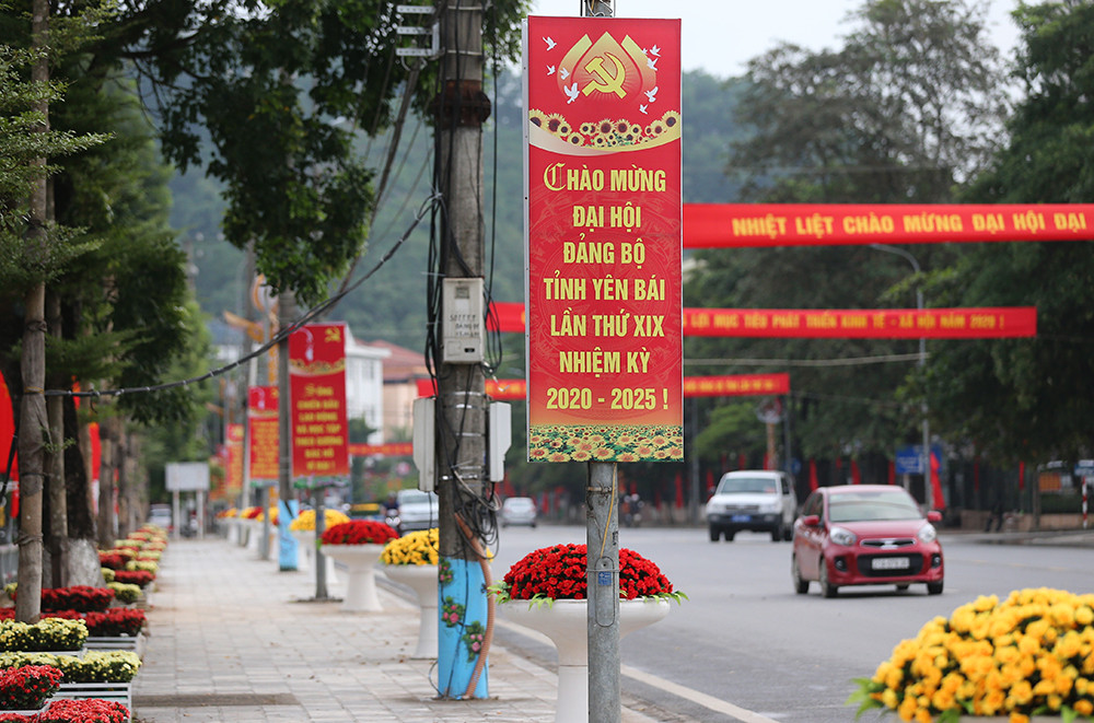 Dọc các tuyến đường được trang hoàng pano chào mừng Đại hội Đảng bộ tỉnh Yên Bái