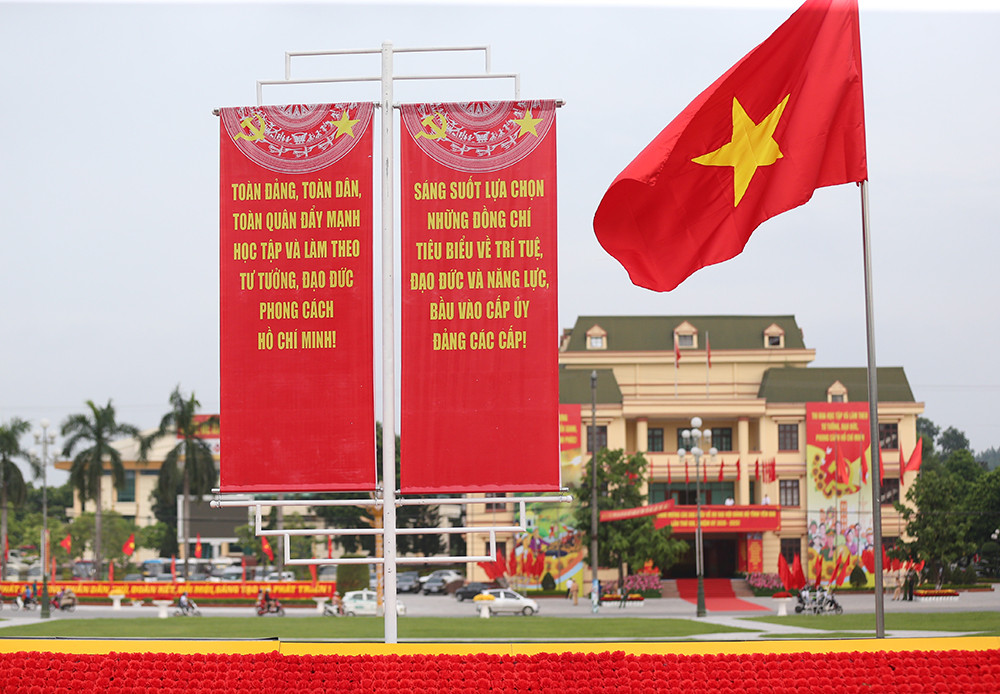 Đến thời điểm này, tất cả các công tác chuẩn bị cho Đại hội đã được hoàn tất. Trên các tuyến phố, cờ Đảng, cờ Tổ quốc cùng băng rôn, biểu ngữ được trang hoàng rực rỡ...
