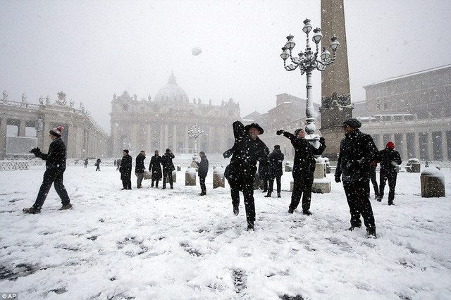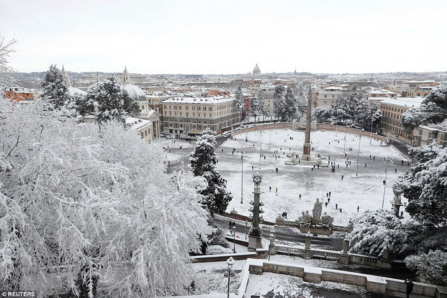 Được biết, đợt tuyết bất thường này là lớn nhất trong 6 năm trở lại đây. Lần gần đây nhất người dân thành Rome đón tuyết vào tháng 2/2012. Một số trường học trong thành phố tạm đóng cửa. Trong khi đó, chính quyền địa phương mở một số trạm xe lửa làm nơi trú ẩn khẩn cấp cho người vô gia cư.