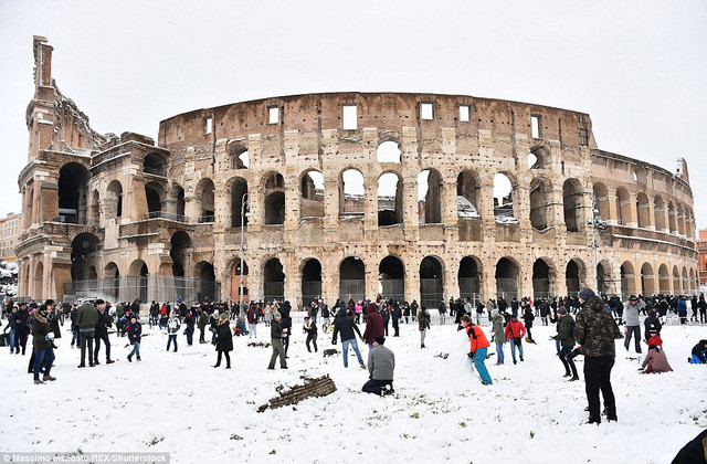 Được thừa hưởng khí hậu vùng biển Địa Trung Hải nên mùa Đông ở Rome thường rất ôn hòa. Người dân tại đây rất hiếm được tận hưởng cảnh tuyết rơi vào mùa Đông. Đợt tuyết này là dịp rất đặc biệt khi du khách đặt chân tới thủ đô nước Ý. Nhiều người dân và du khách đổ ra đường, hòa trong cuộc chiến “quả cầu tuyết” hoặc tản bộ trong rừng ngập màu trắng.