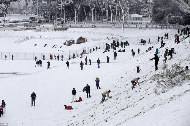 Đây là trận tuyết kỷ lục trong vòng 6 năm trở lại đây của người dân thành Rome.