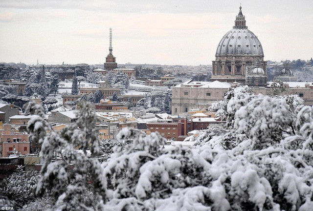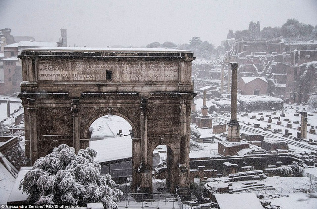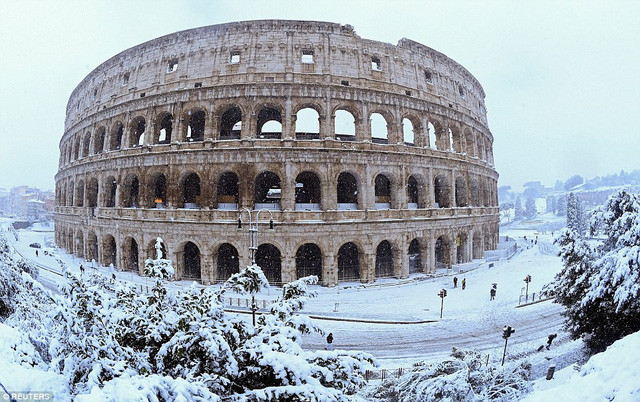 Rome bỗng hóa thiên đường mùa Đông khi khối không khí lạnh từ Siberia bất ngờ tràn xuống, tạo nên đợt tuyết rơi lớn nhất trong 6 năm trở lại đây.