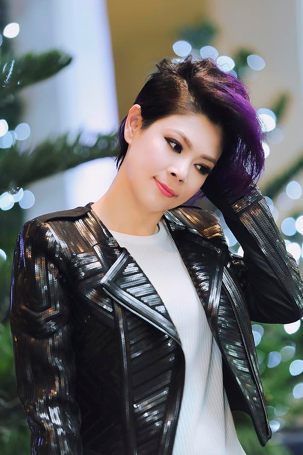 Thanh Thảo cá tính và nổi bật trên phố phường đông đúc những ngày cuối năm với mái tóc tím.
