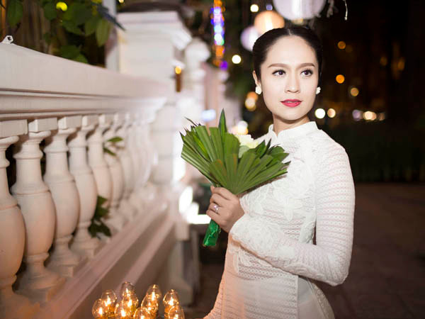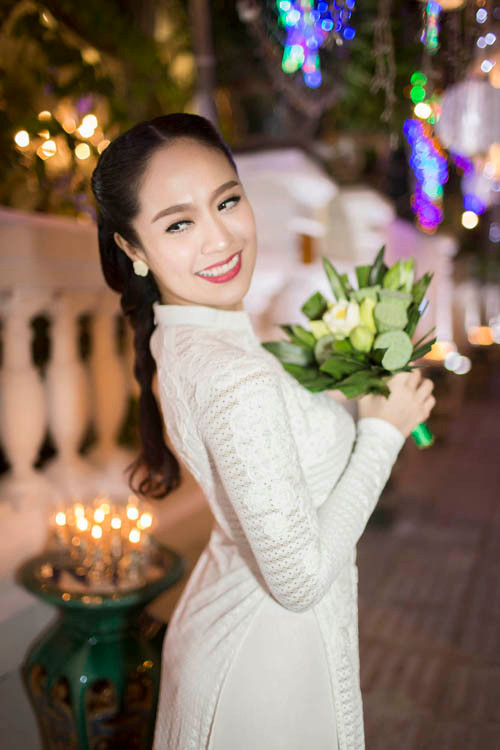 TPO - Hoa hậu Việt Nam 2008 và nữ diễn viên xinh đẹp khoe vẻ duyên dáng nhưng không kém phần gợi cảm trong tà áo dài Việt Nam trong một sự kiện tối 26/12.